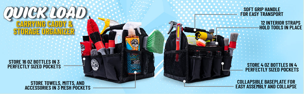 Give your paint a fresh start, cut away defects and imperfections, and perfectly prep your paint for a new coat with the TORQX Paint Correction & Perfection Car Polish Kit! Wash away old layers of waxes and sealants with Clean Slate Surface Cleanser Wash. Then, polish your paint all on your own with the easy to use TORQX Random Orbital Polisher. Remove scratches and swirls with C4 Correction Compound and your Orange Cutting Pad, then perfect your paint with P4 Perfection Polish and your White Polishing Pad, and perfectly apply a fresh coat of your favorite Chemical Guys finish with your Black Finishing Pad. Clean and condition your pads with Pad Cleaner and Pad Conditioner to keep them lasting their longest, and perfectly store your arsenal and take it with you on the go with the Quick Load Carrying Caddy & Storage Organizer.